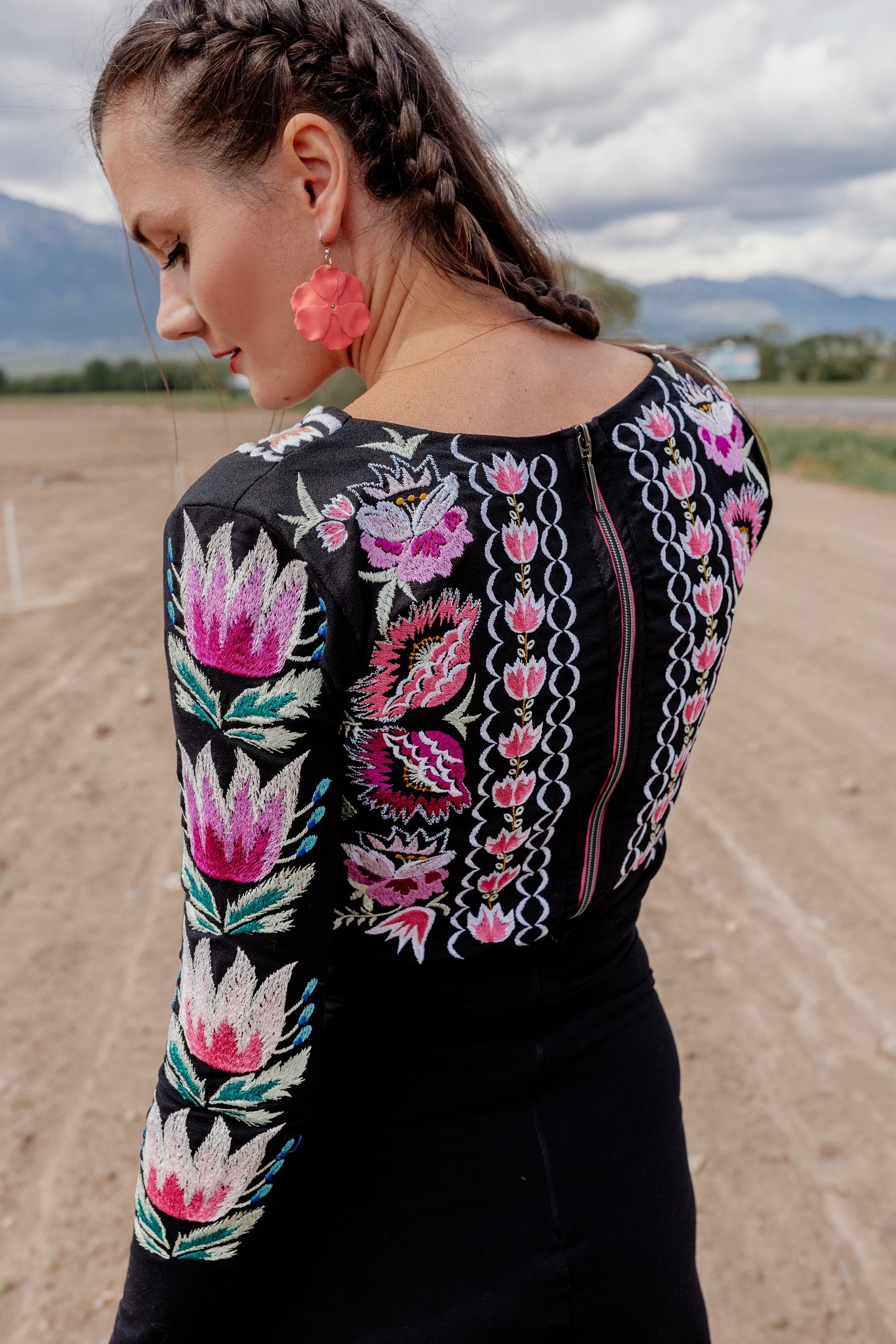 Živôtik je ručne vyšívaný plným stehom, ramienka sú pružné. Zapínanie vzadu na deliteľný zips.