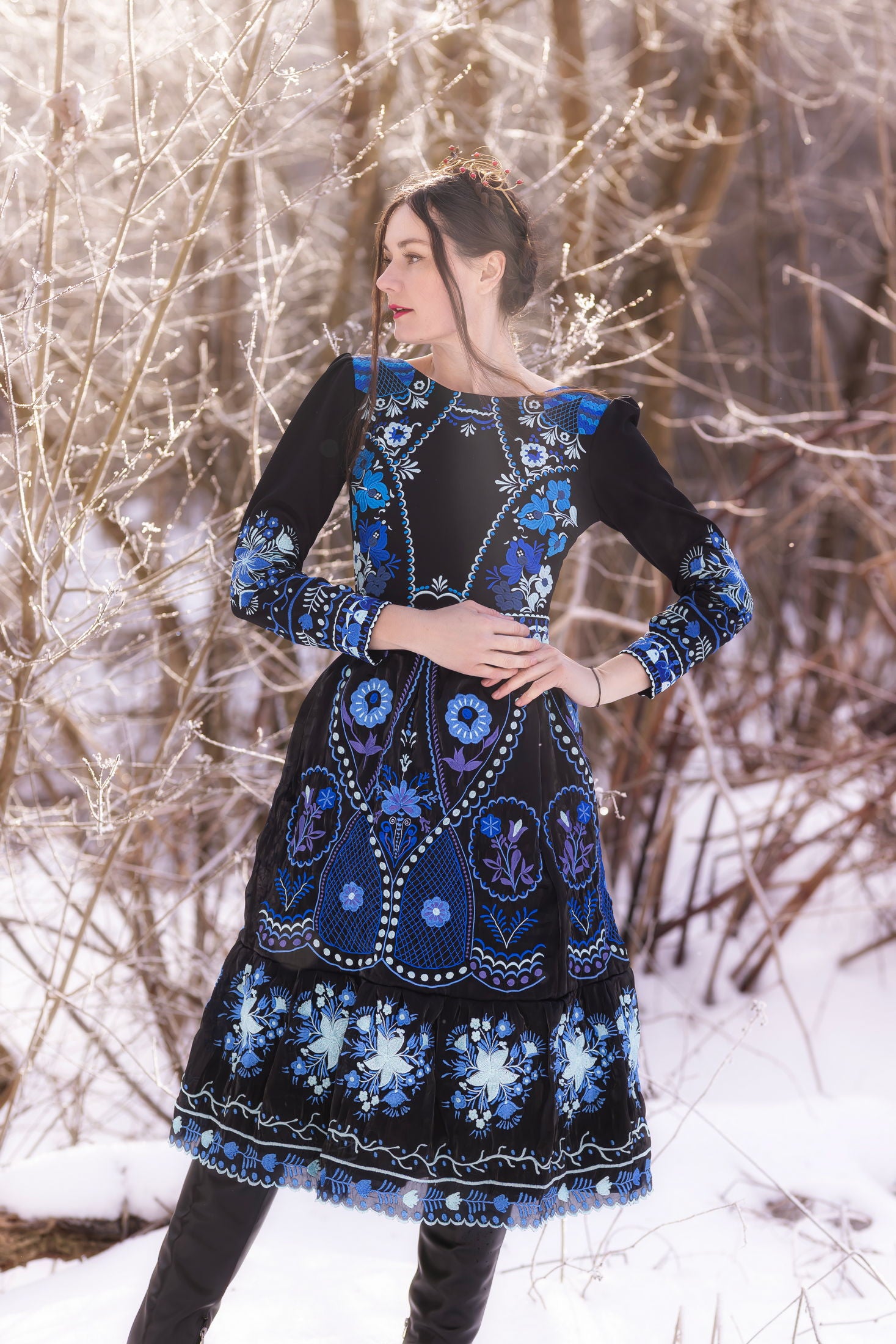 Čierne vyšívané šaty Pozdišovská karička