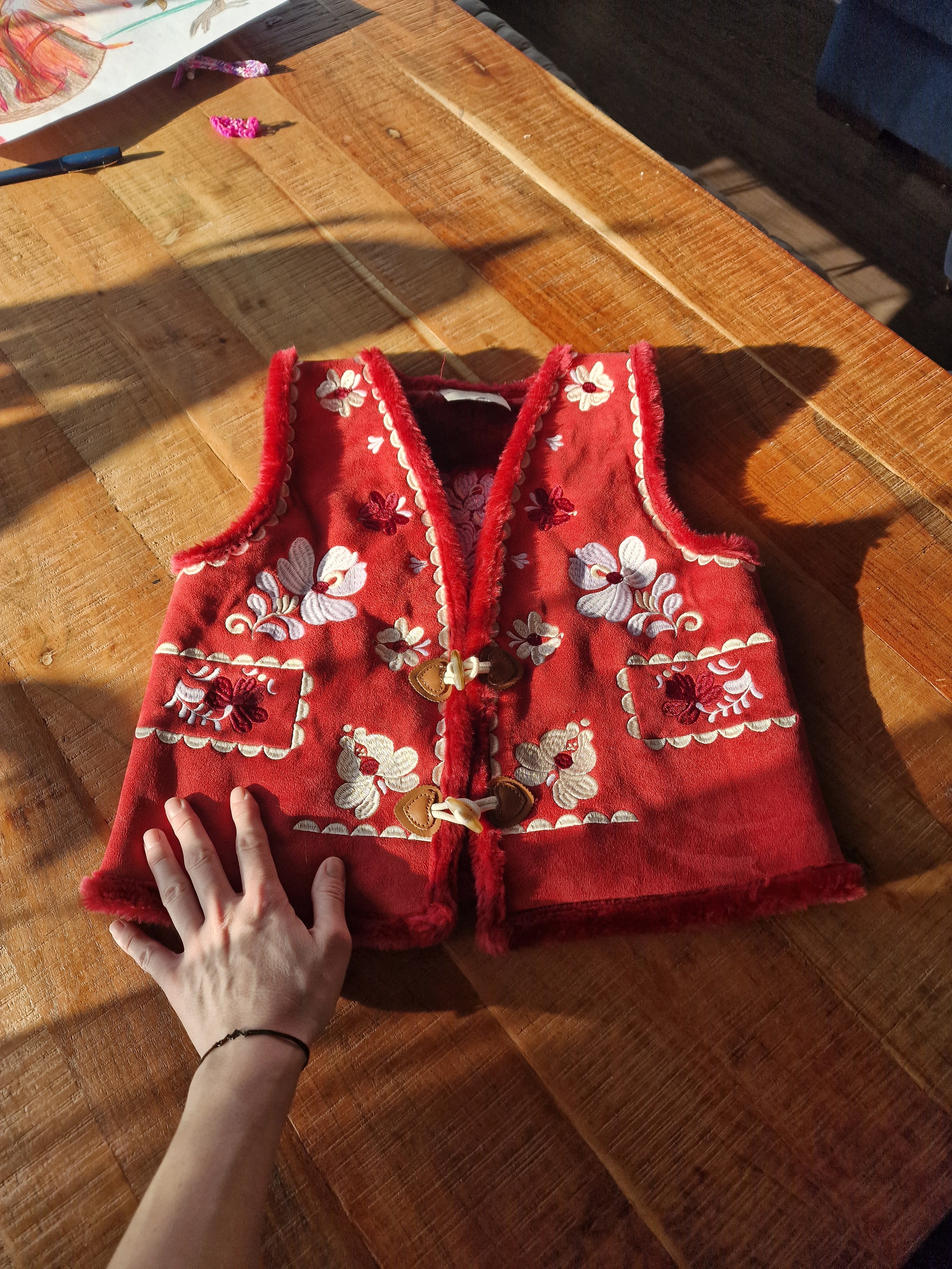 Červená vyšívaná vesta Pozdišovská karička