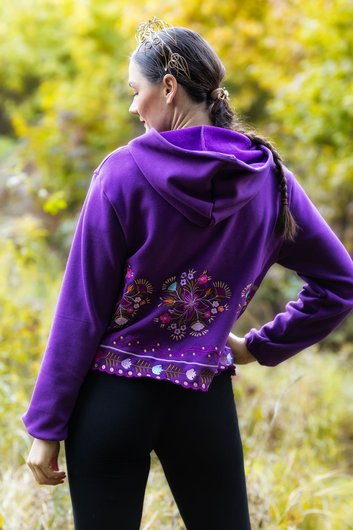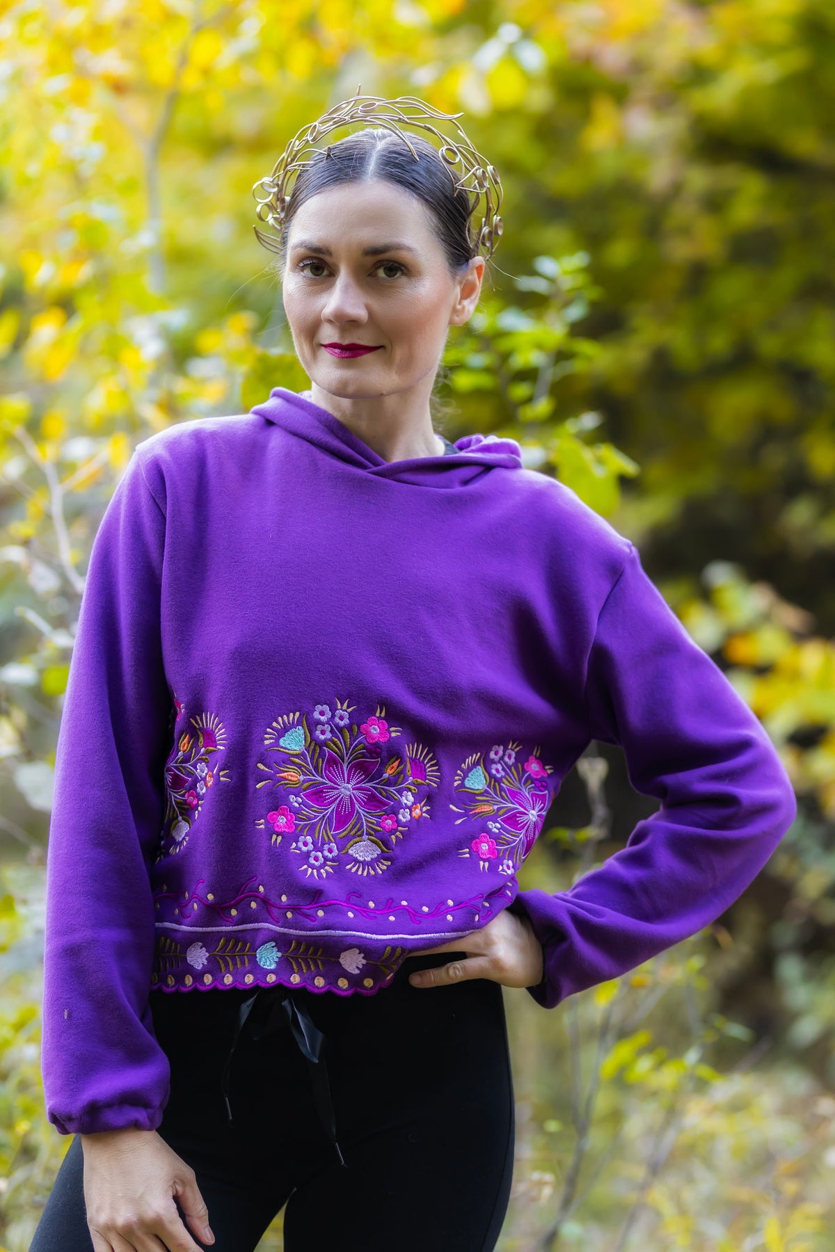 Príjemná, mäkká mikina s kapucňou, strojom vyšívaná, nepodšitá. Rukávy stiahnuté gumkou.