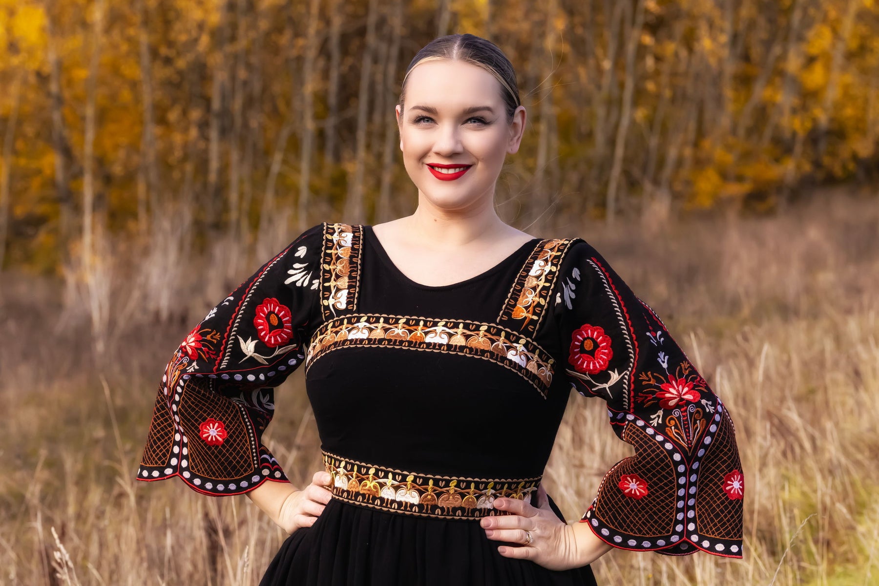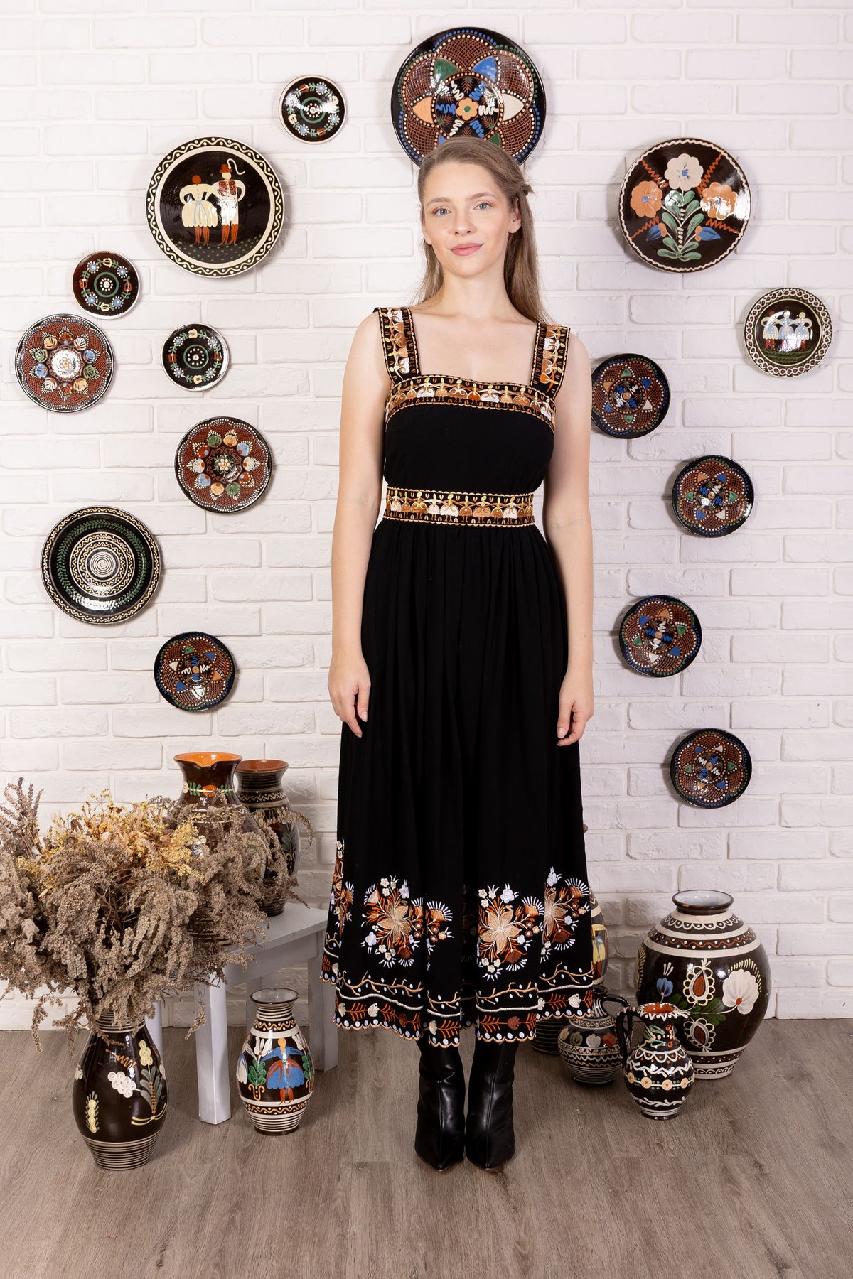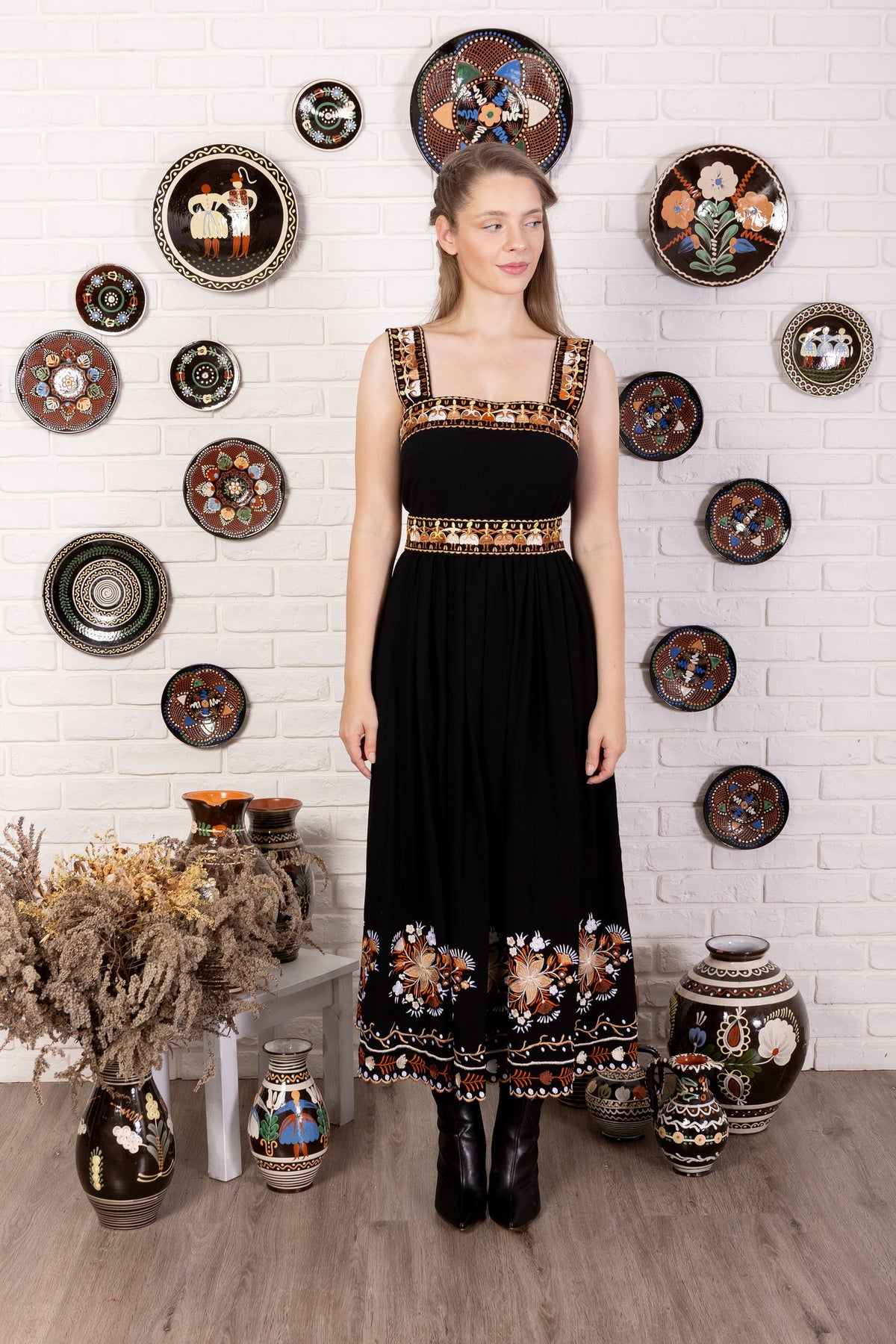 Šaty sa zapínajú vzadu na krytý zips a viazanie. Živôtik podšitý, sukňa nepodšitá. Strojom vyšívané, autorská výšivka inšpirovaná motívmi pozdišovskej keramiky.
