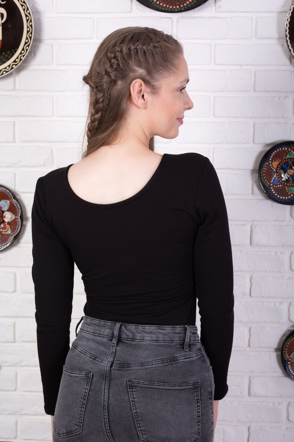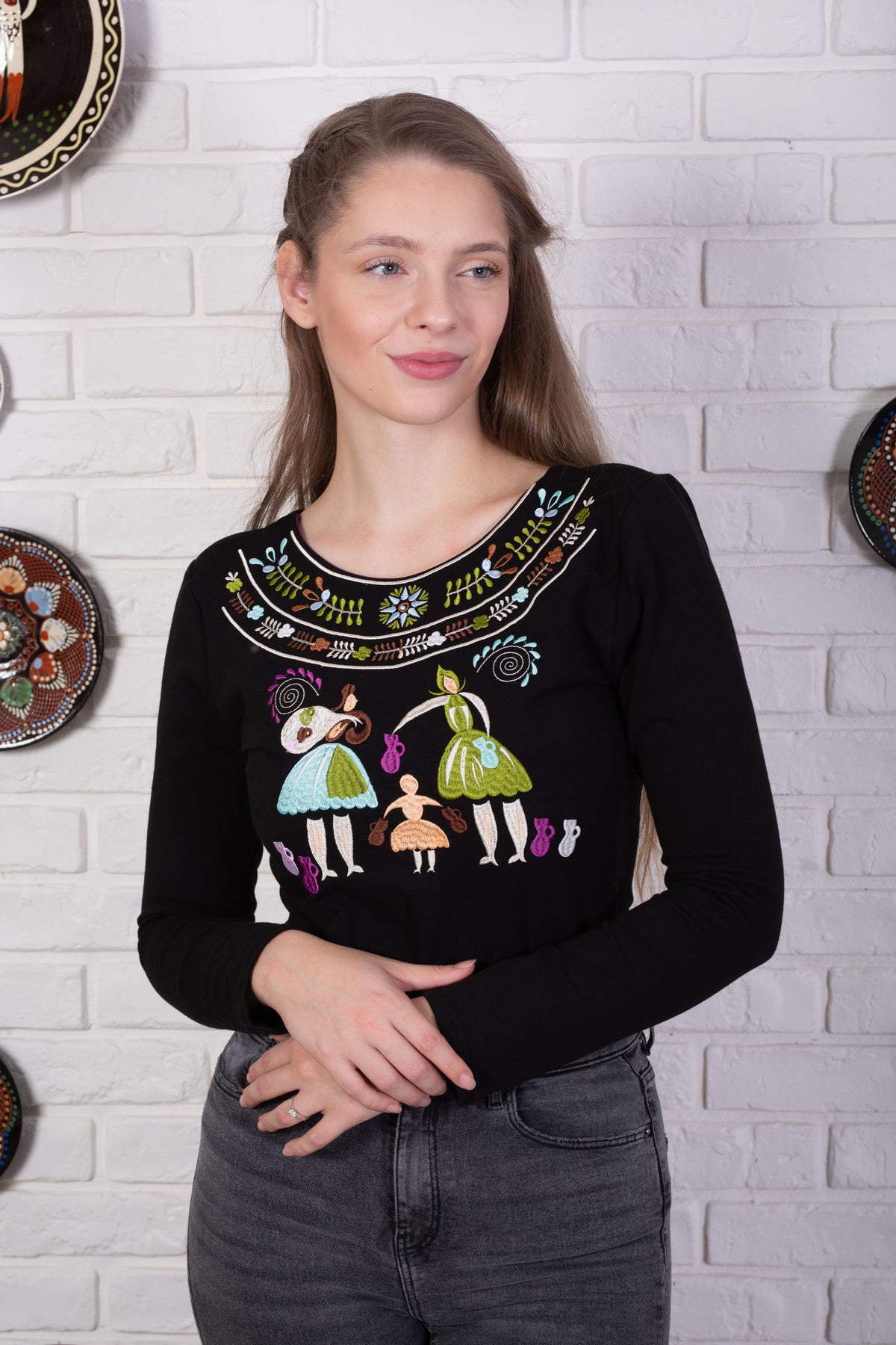 Strojovo vyšívané tričko, podšité pod výšivkou. Okrúhly výstrih.