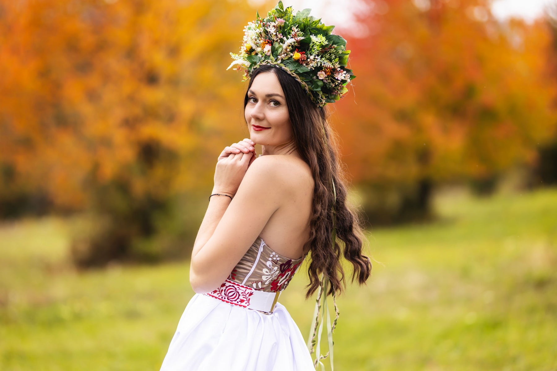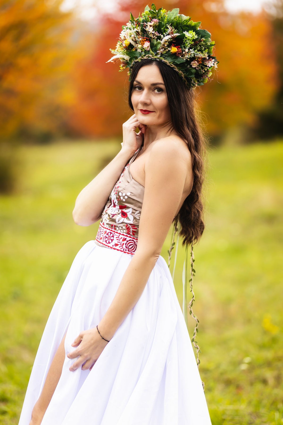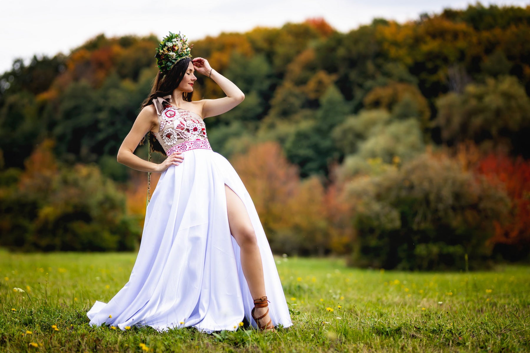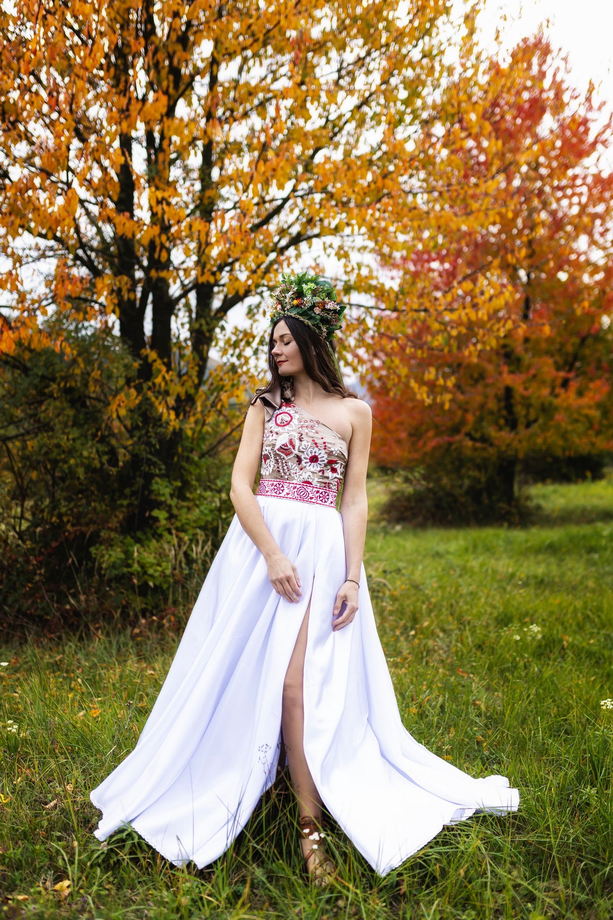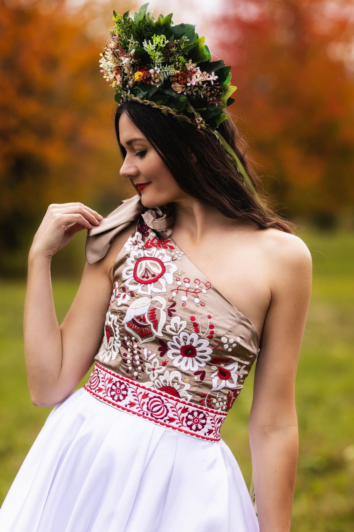 Ručne vyšívané šaty na jedno rameno Poľana